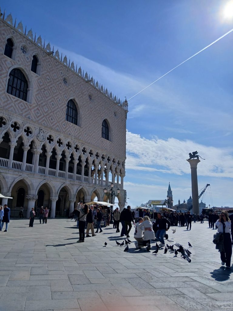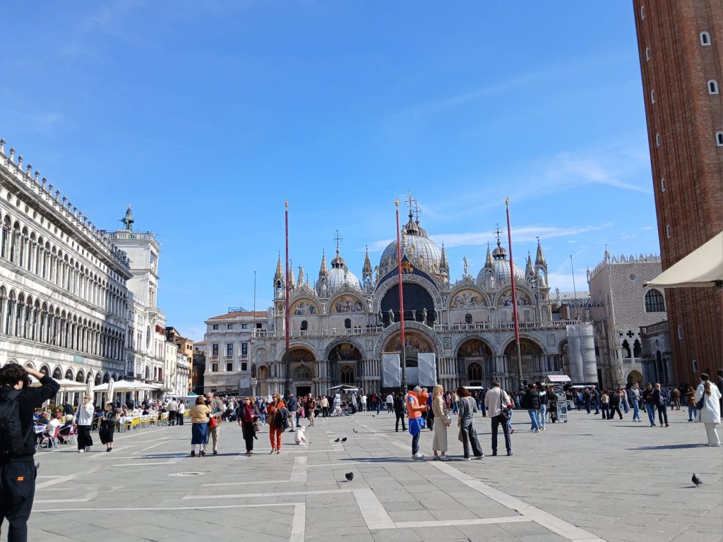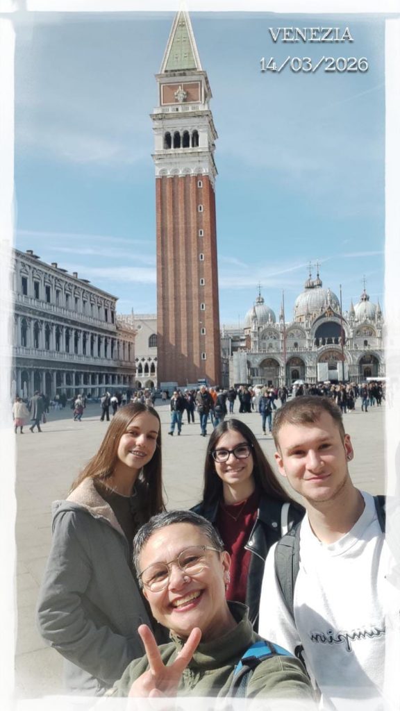 ¡Hoy hemos ido a Venecia! Nos hemos levantado temprano porque habíamos quedado a las 7 y media con la tía y el primo de Giorgia para ir a la estación de Bolonia ya que ellos han venido con nosotras. El hermano de Giorgia no ha podido venir porque tiene clase los sábados. Nada más llegar cogimos una especie de autobús, que en realidad era un barco, para llegar a la Plaza de San Marco que me encantó y luego estuvimos dando una vuelta por la ciudad y visitando los sitios más importantes y me gustó mucho ya que me parece una ciudad muy especial. Teníamos que llegar a Bolonia a las 6 porque teníamos que ir a un teatro con la clase así que, como nuestro tren salía a las 4 y media, fuimos a la estación bastante antes y merendamos allí y luego en el tren estuvimos jugando a juegos de cartas. Cuando llegamos a Bolonia fuimos al teatro y la verdad que no nos gustó mucho la obra y además estábamos cansadas de todo el día. Cuando terminó el teatro, sobre las 9 y media, fuimos a comer a un McDonalds que había al lado con dos niñas más de la clase de Giorgia y luego la madre de una de esas niñas nos llevó a nuestra casa. Nada más llegar nos fuimos a dormir porque estábamos muy cansadas.