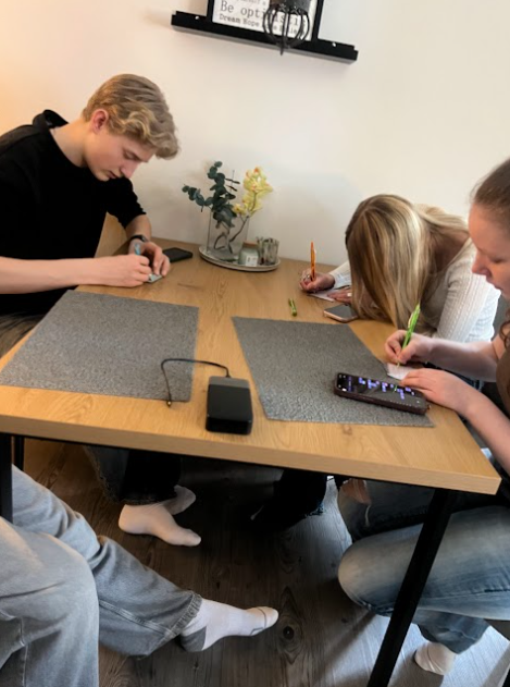 Me preparé y nos fuimos al colegio. A primera hora teníamos Música, donde tocamos una canción en el piano. Después de Música estuvimos en la biblioteca hasta la hora del lunch. Allí comimos espaguetis boloñesa, que estaban muy buenos. Más tarde tuvieron Sueco, así que nos quedamos de nuevo en la biblioteca, y después fuimos a Español, donde vimos una serie y comentamos algunos aspectos sobre ella. Antes de terminar la clase hicimos un Kahoot muy divertido. Al salir, fuimos al apartamento de Vide (el sueco de Carlos) y pasamos un rato allí. Más tarde nos fuimos al centro, entramos en algunas tiendas y luego fuimos al Max a cenar. Después seguimos un rato más de tiendas hasta que volvimos a casa de Linn. Allí estuvimos jugando a un juego de música y charlando. Cuando todos se fueron, me fui a dormir.